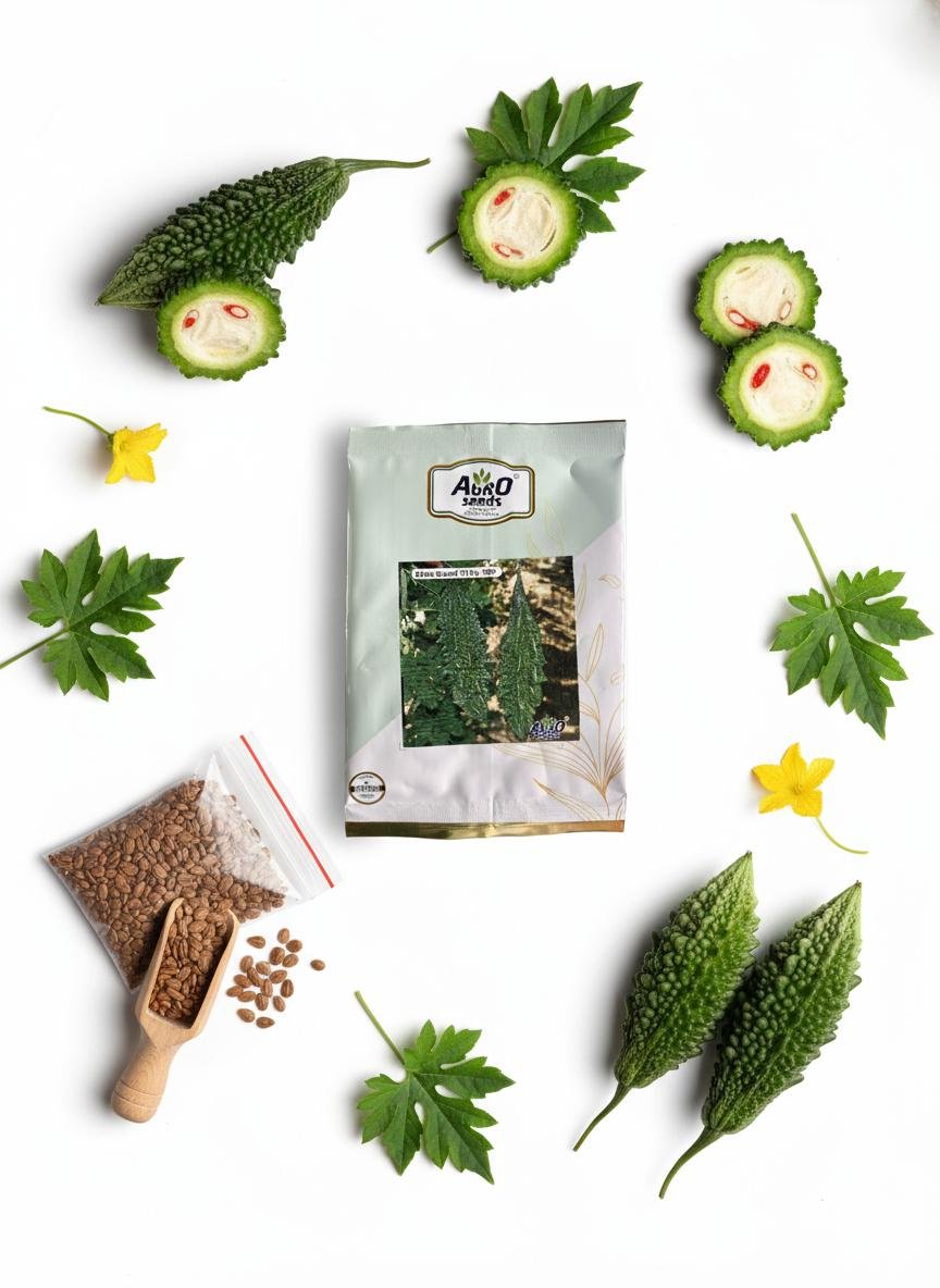 Cultivate the highly nutritious Bitter Gourd (Karela) with Agro Seeds' Premium Quality Seeds. This high-yielding variety produces long, dark green, and spiny fruits known for their potent health benefits. Perfect for growing in your home garden, balcony, or terrace to ensure a fresh, consistent supply of this valuable vegetable.